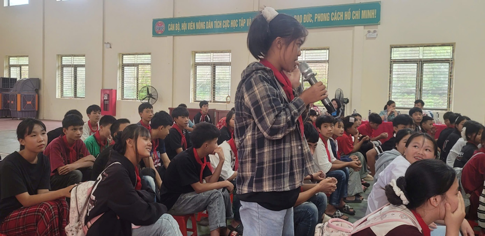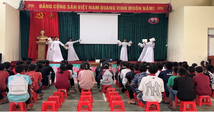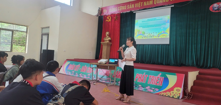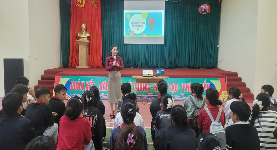 Sau phần văn nghệ, cô giáo Trịnh Thị Lan – Tổ trưởng tổ KHXH – giáo viên môn Lịch sử và Địa lý - người có nhiều năm kinh nghiệm trong công tác giáo dục và hướng nghiệp, đã có những chia sẻ gần gũi, thiết thực về các phương thức tuyển sinh vào lớp 10 THPT, chế độ chính sách, cũng như những con đường học tập và nghề nghiệp phù hợp với năng lực, hoàn cảnh của từng học sinh. Cô nhấn mạnh rằng: “Không có con đường nào duy nhất dẫn đến thành công. Điều quan trọng là các em biết lựa chọn hướng đi phù hợp với bản thân, với điều kiện gia đình và ước mơ của mình.”